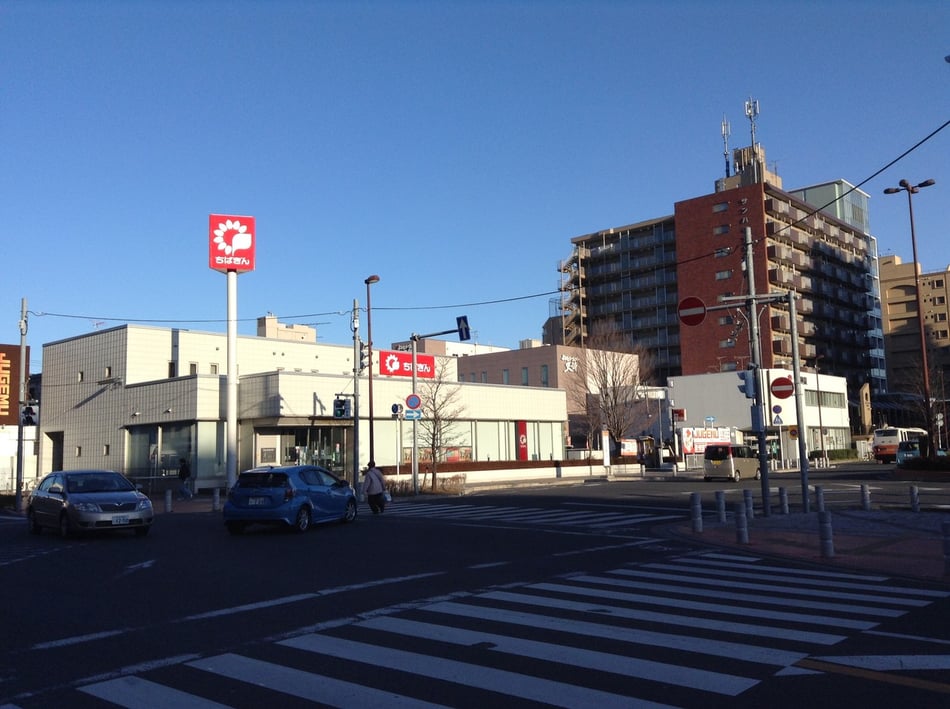 ロータリーにある千葉銀行前の横断歩道からの当店までの