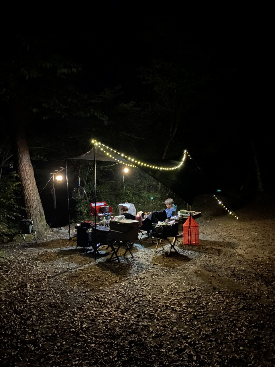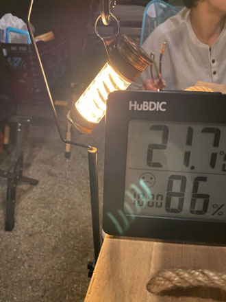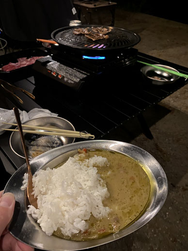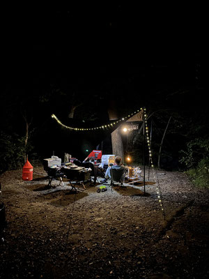 グリーンカレー食べて・・時折懐中電灯で湖を照らしてみたり・・・