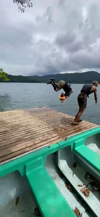 10/3 青木湖SUPの遊び方編(笑)part4 (∩´∀`)∩ 桟橋ダッシュして前転で湖に飛び込む( `ー´)ノ