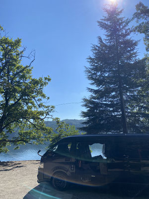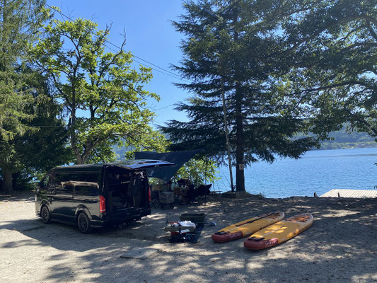 んで白馬のの隣町・大町にある100%湧き水の湖・青木湖畔でキャンプ。