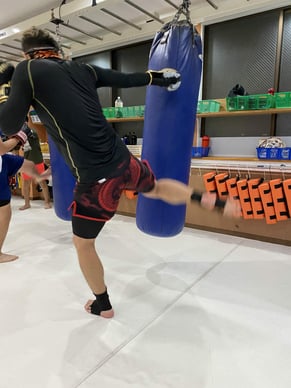 バトルロープとタイ人のミットで鍛えた右ストレートをぶちこむ!!! とゆーイメトレをしながらサンドバッグを打ち込んでます笑笑
