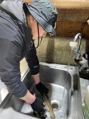 この日は釣れた魚をその場でさばき、クーラーボックスに入れて持ち帰り・・・