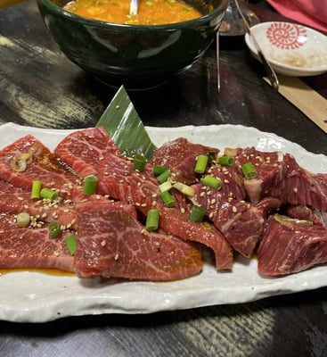紹介でしか入れないあやしいお店(笑) 看板無し・メニュー無し・値段無し・・・・(;^ω^) なので注文するときは、「イイ感じの肉を何種類か塩系で・・・」とか「今度はたれ系で、ちょっと違う部位を・・・」とか