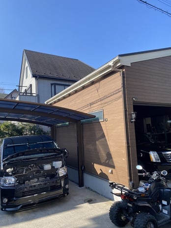 まずはベースキャリアを二本固定してから、ルーフボックスをガレージの天井からするするっと降ろして装着!!