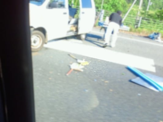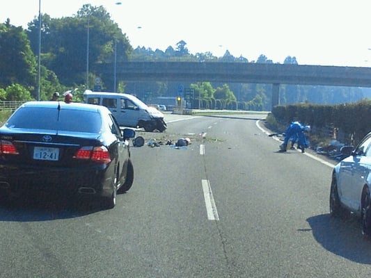 前を見ると交通事故!!(; ・`д・´)