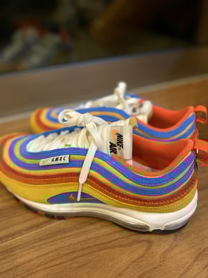 4/21 最近オシャレ男子がよく履いてる?スニーカー・エアマックス97の復刻シリーズ。足がむれやすい僕には不向きな素材でできてるんですが、なんと97シリーズにランニングバージョン的な感じのが出たので即購入!!!\(^o^)/ランニング系はだいたい通気性がいいので春夏も履きやすいんですね~(●´ω`●) 色もカワイイし❤ オオゼキ
