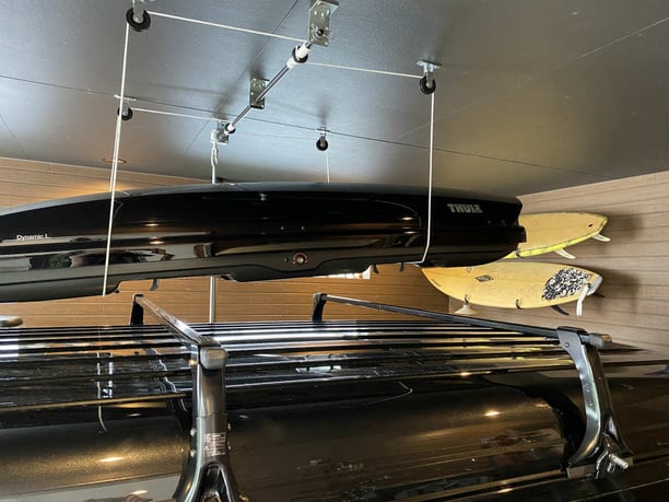 その上にするするっとスーリーのルーフボックスをおろして固定( `ー´)ノ