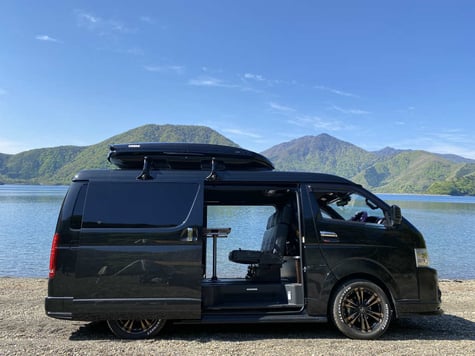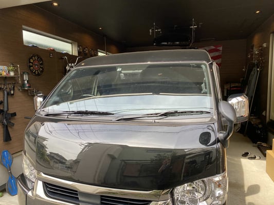 5/25 ハイエースのプチカスタムシリーズ!!「メッキ撲滅運動」(笑) せっかくアウトドアに使う車だしサワヤカにオフロードっぽくしたいので、これからちょっとづつメッキ部分を無くしていきます!!(--〆)まずは・・・ギラギラ感強めのドアミラーに
