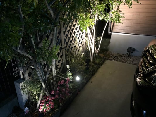 で・・これだけでは夜暗くなるとつまらないので、ネットで買っておいたソーラーライトを設置します(^^♪