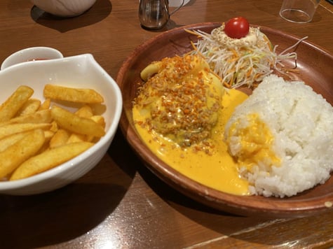 たっぷりチーズがかかったハンバーグと大好きなポテトをもちろんランチで(^-^; オオゼキ