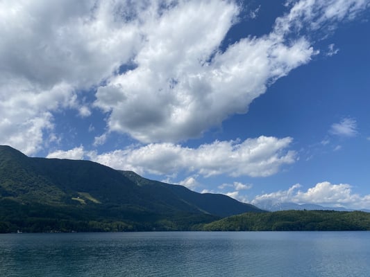 んで白馬のの隣町・大町にある100%湧き水の湖・青木湖畔でキャンプ。