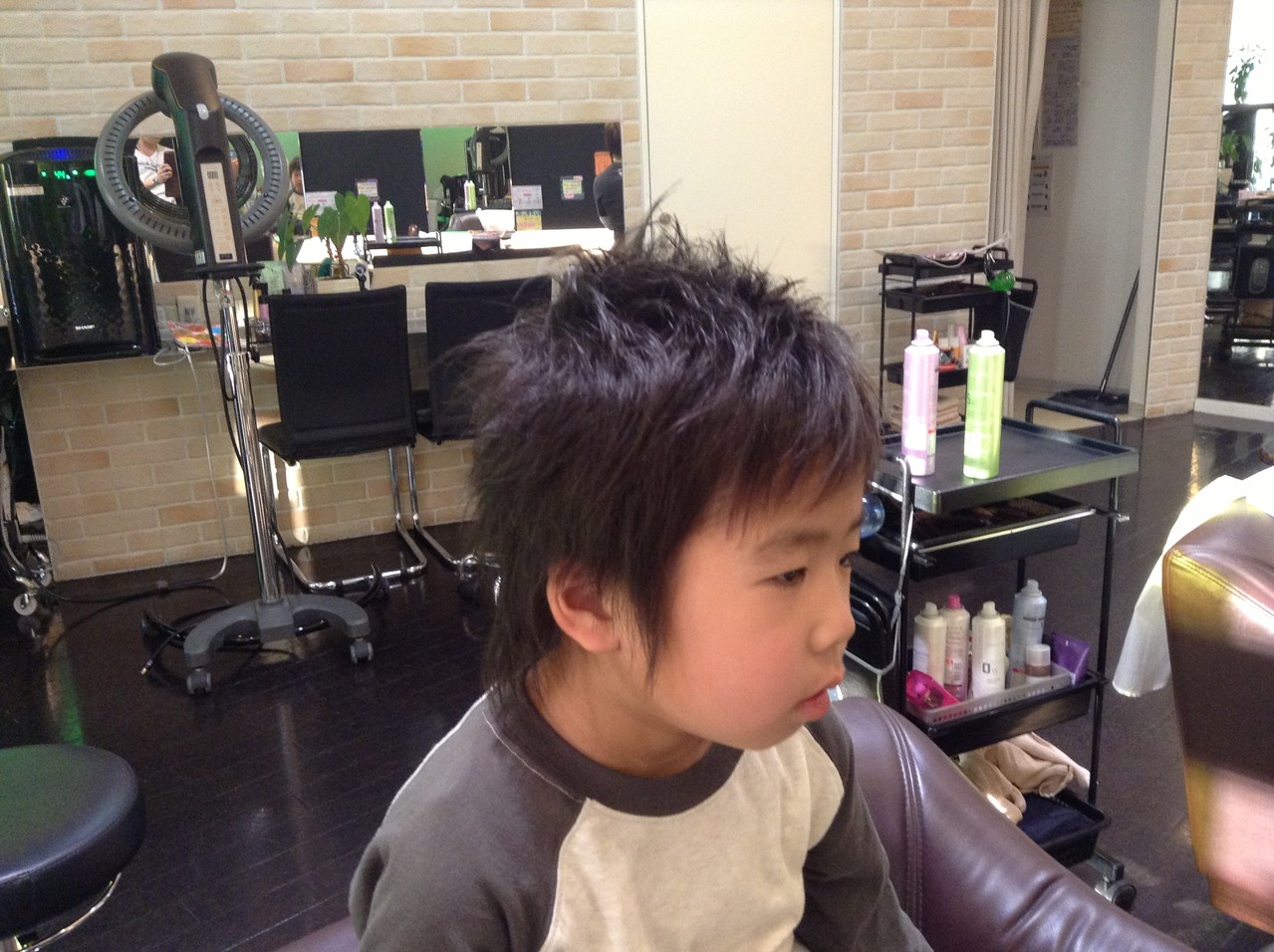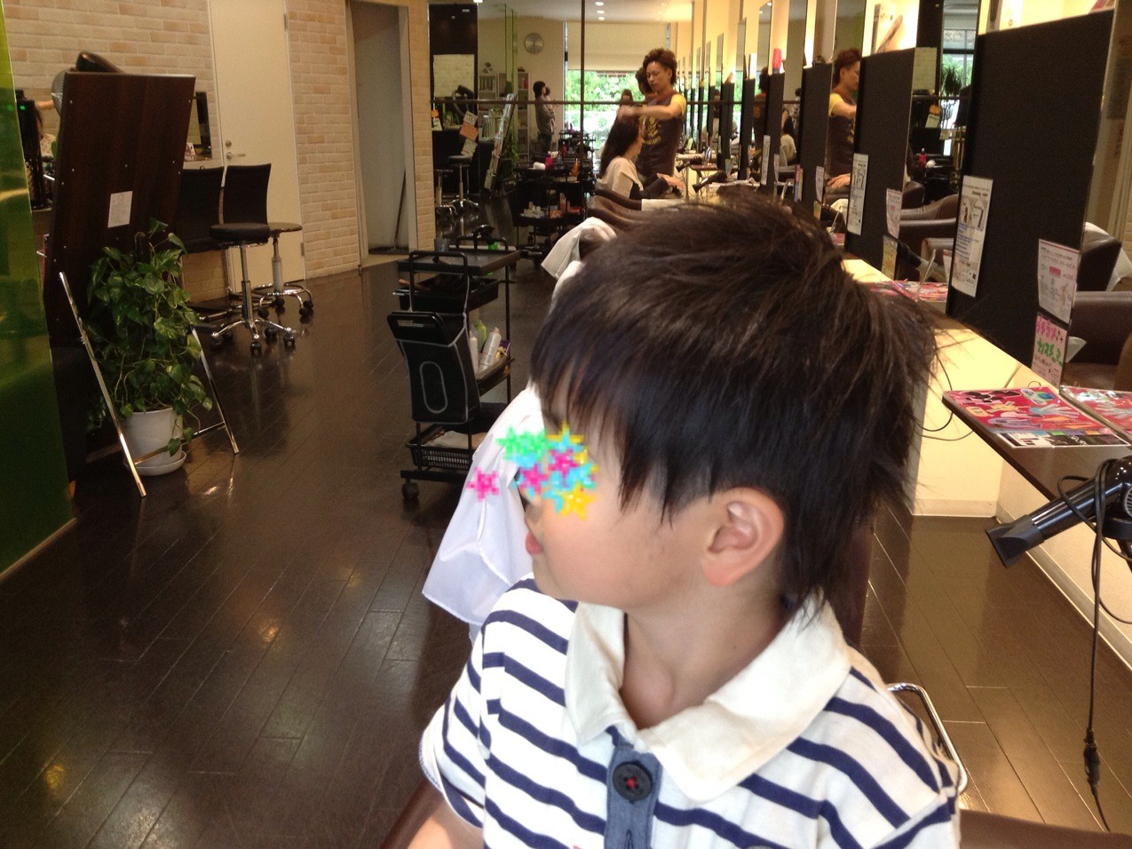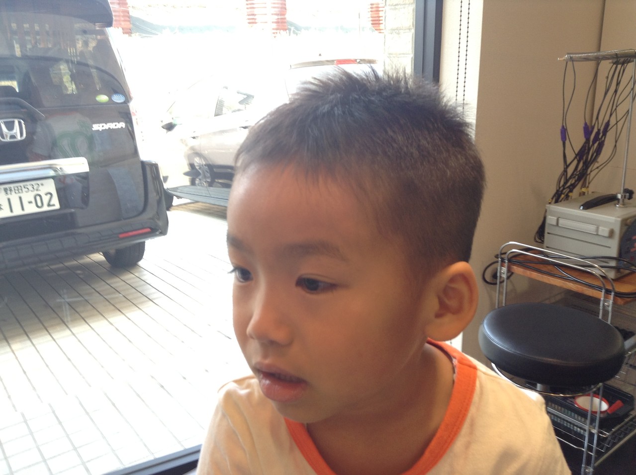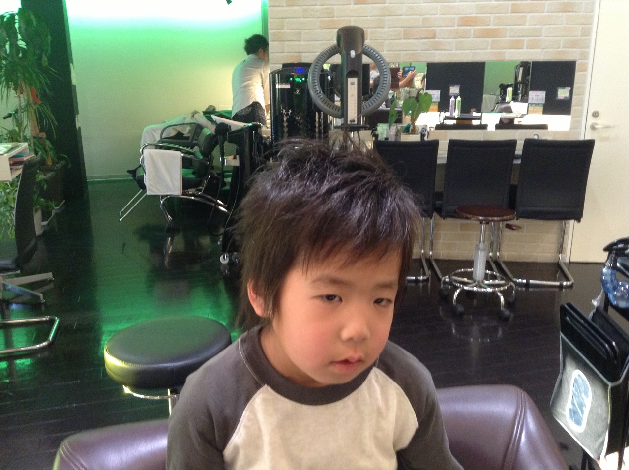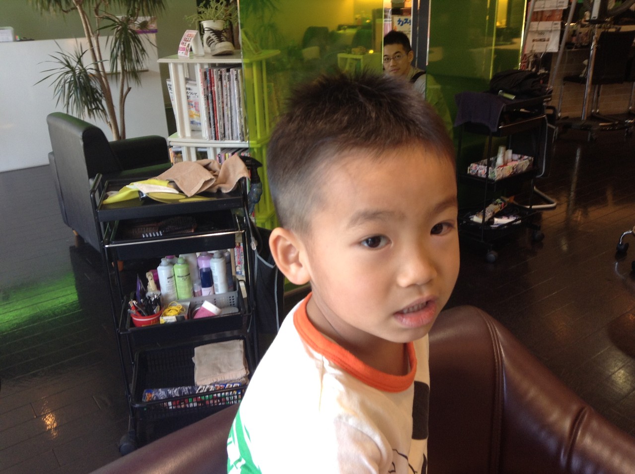 年中さんのはるとくん。まわりを刈り上げて、ソフトモヒカンに!!