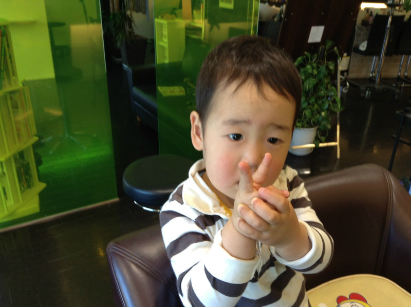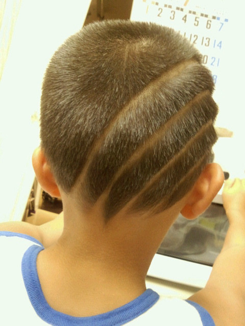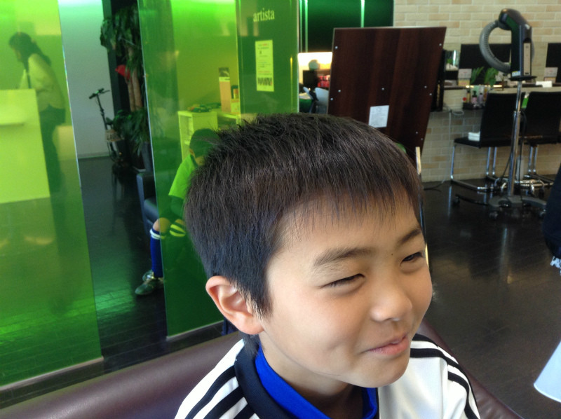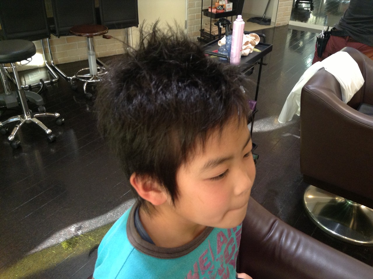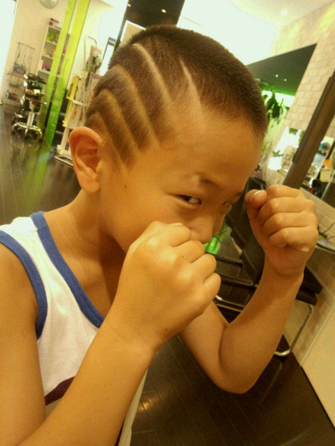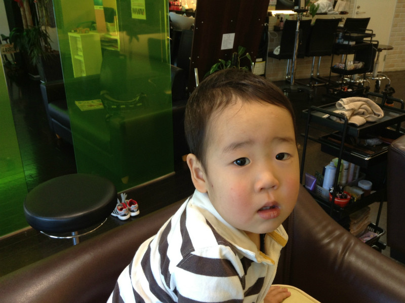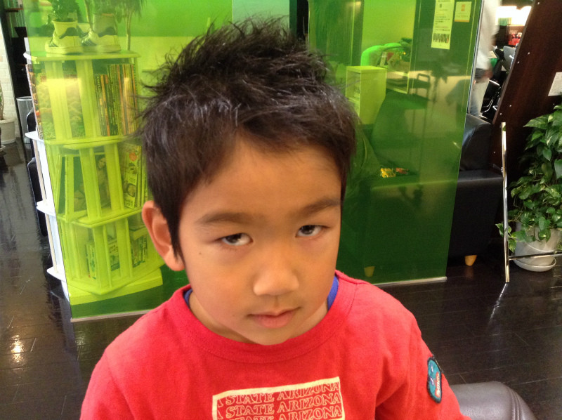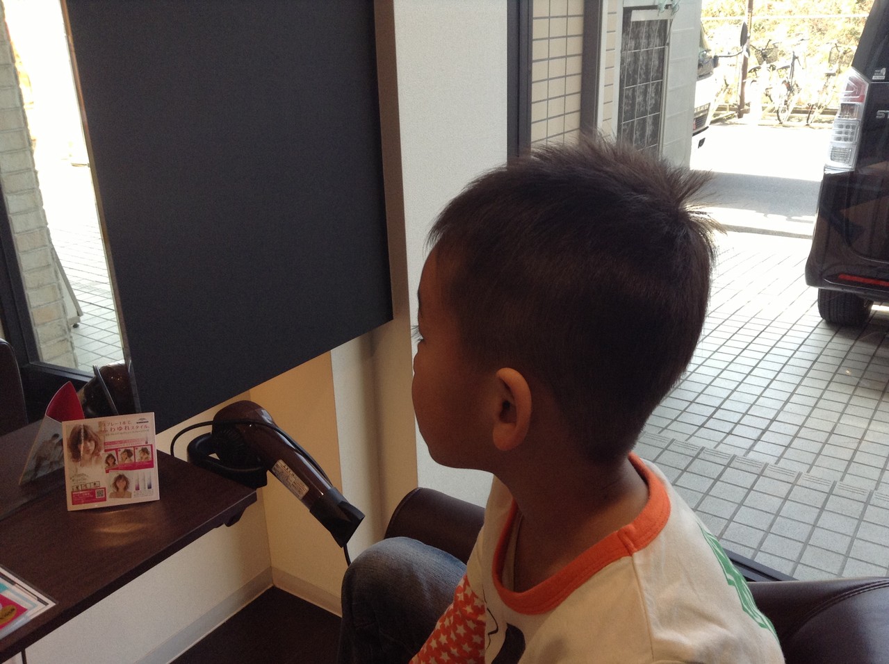 年中さんのはるとくん。まわりを刈り上げて、ソフトモヒカンに!!