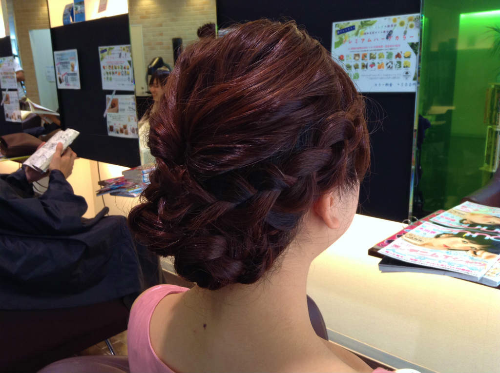 片側はW編み込みで、サイドアップにしてみました( *´艸`)