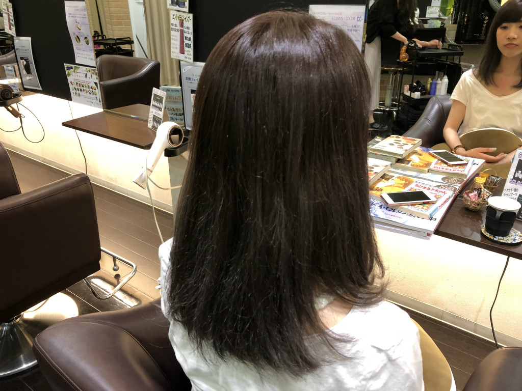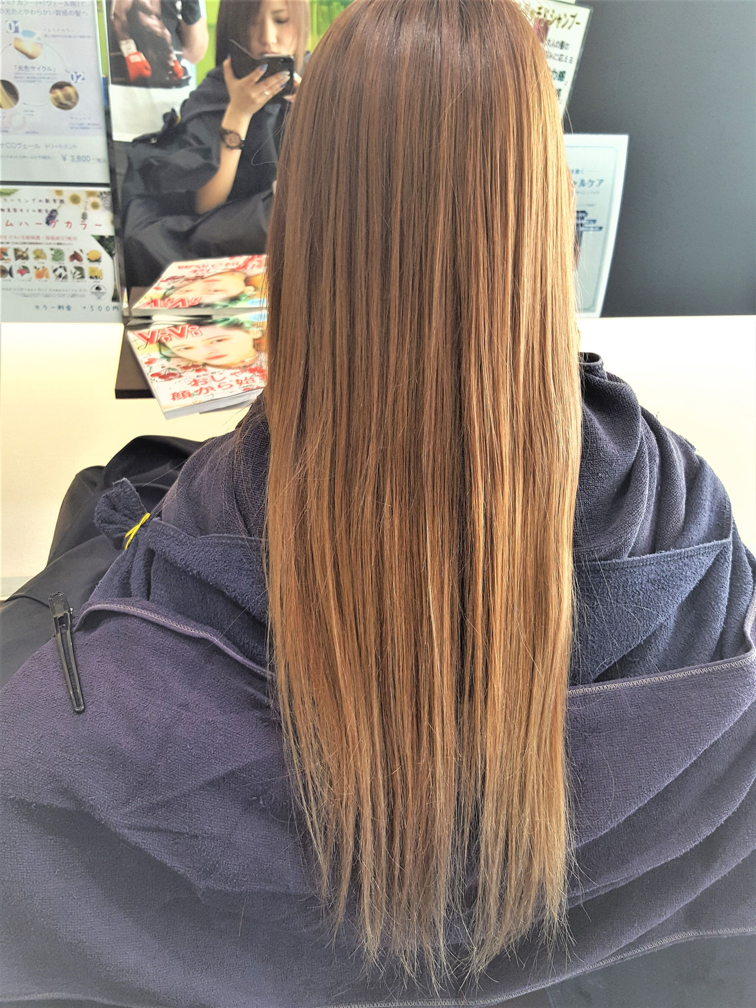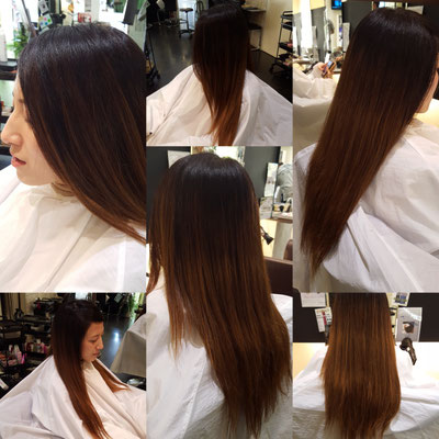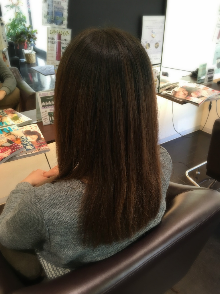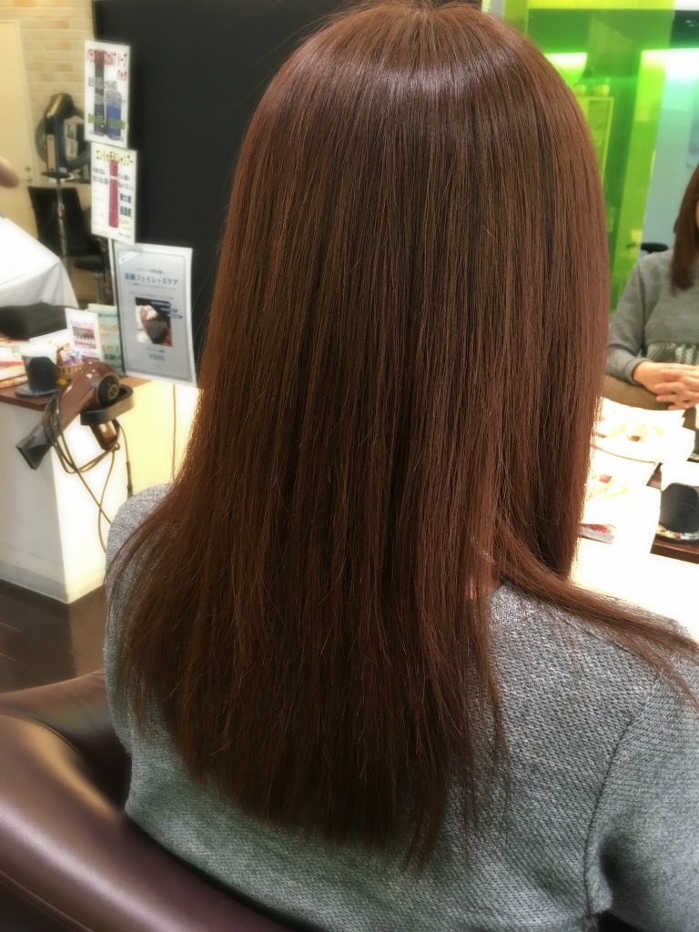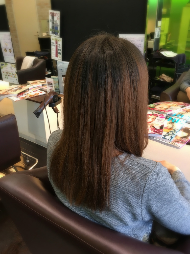 カラーで全体を地毛に近いツヤの出る暗めな色に!!