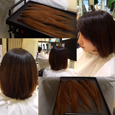 切った毛先はゴムで結んで「ヘアドネーション」に寄付!!