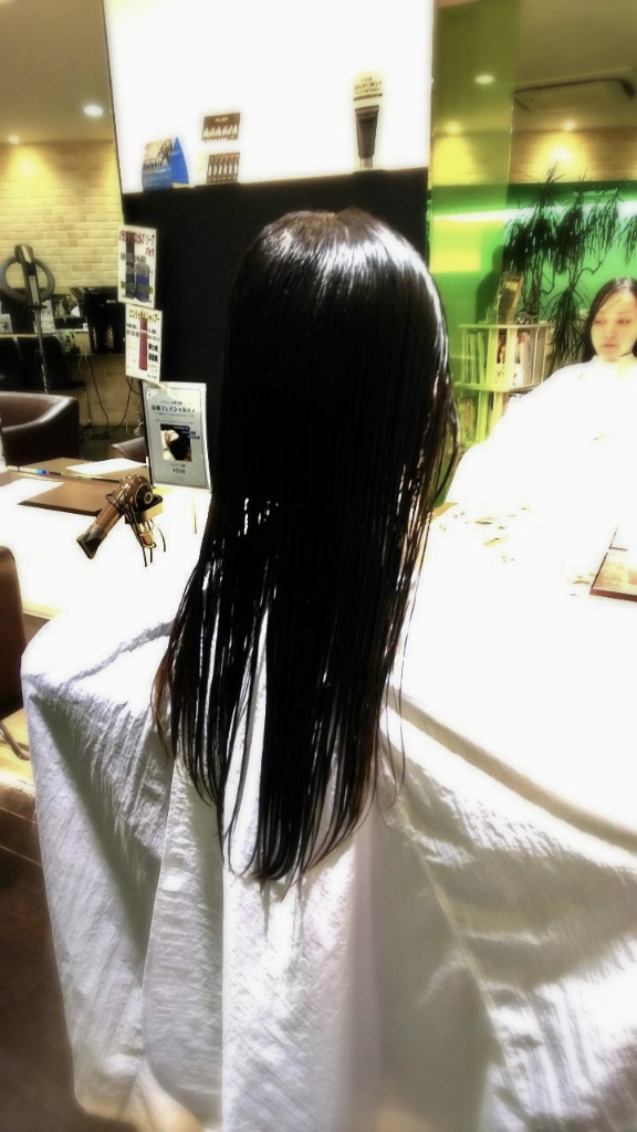 まずストレートすぎる髪にデジパーで毛先にワンカールと、前髪にもビッグロッドでゆるパーマ(;^ω^)