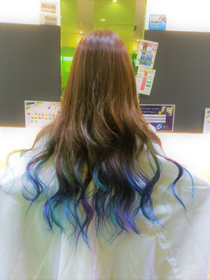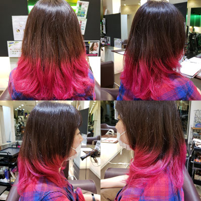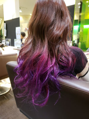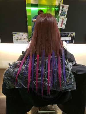 その後ブリーチ部分に、カラーミューズのピンクとパープルを交互に入れて!!