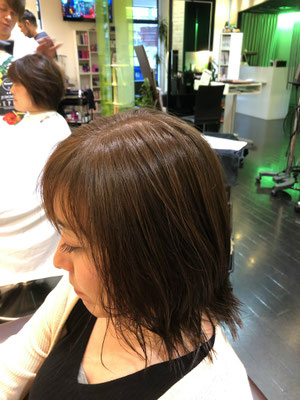 日々忙しいママさんなので、お手入れがラクで、朝簡単にキマル肩はねルーズ切りっぱ系ボブを(やや軽)をご提案!!
