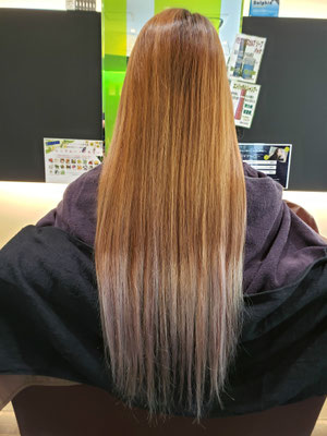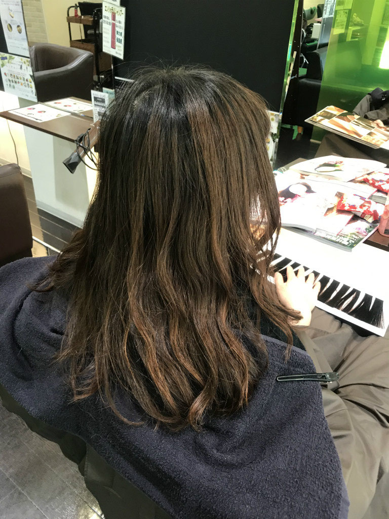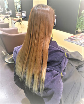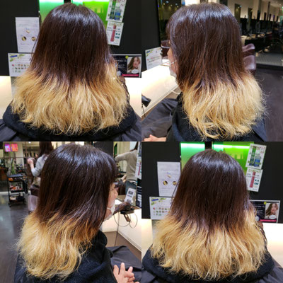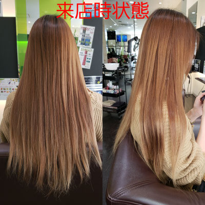 右二枚が来店時からの→根元~中間をまずピンクパープル系ブラウンに!