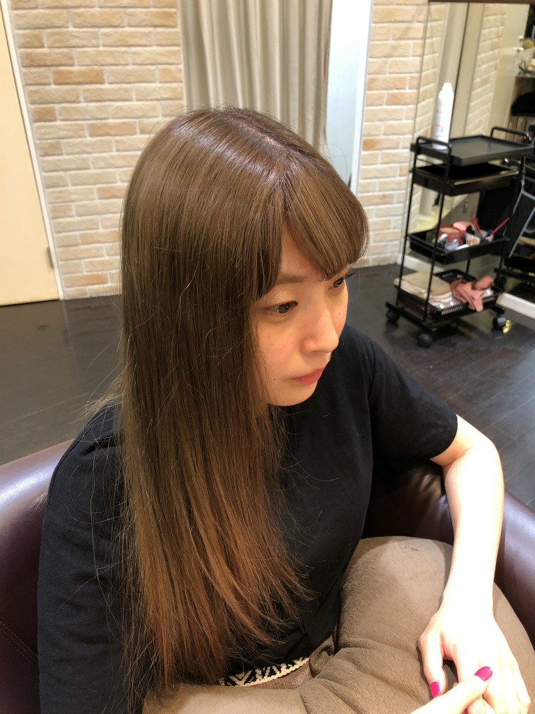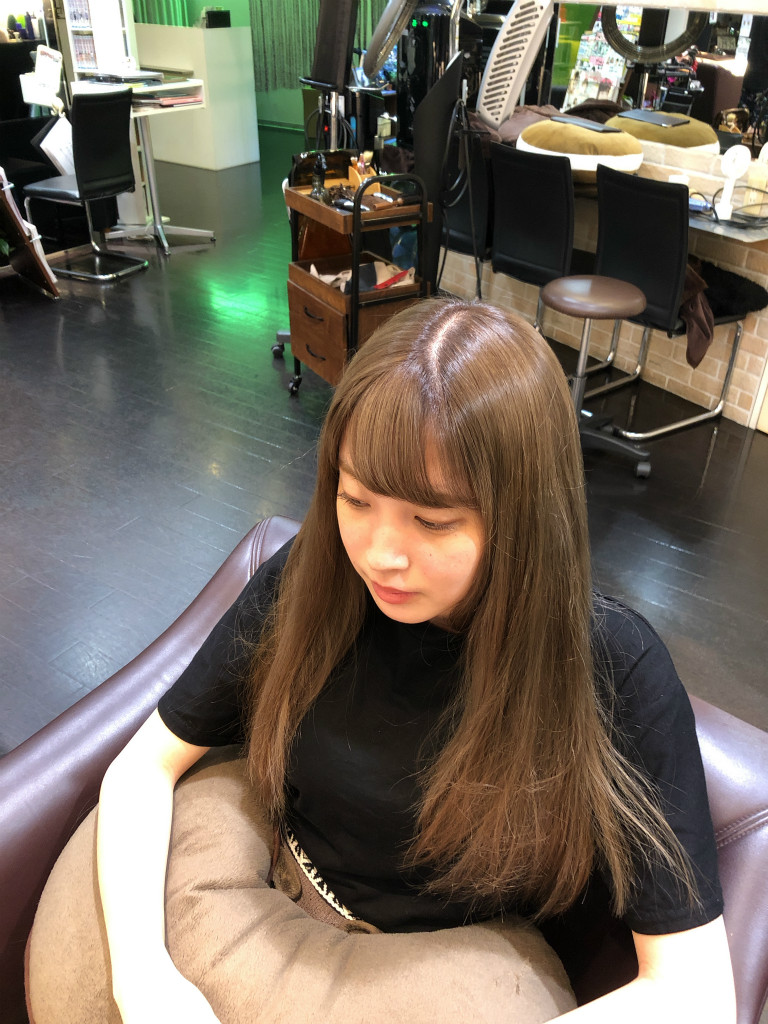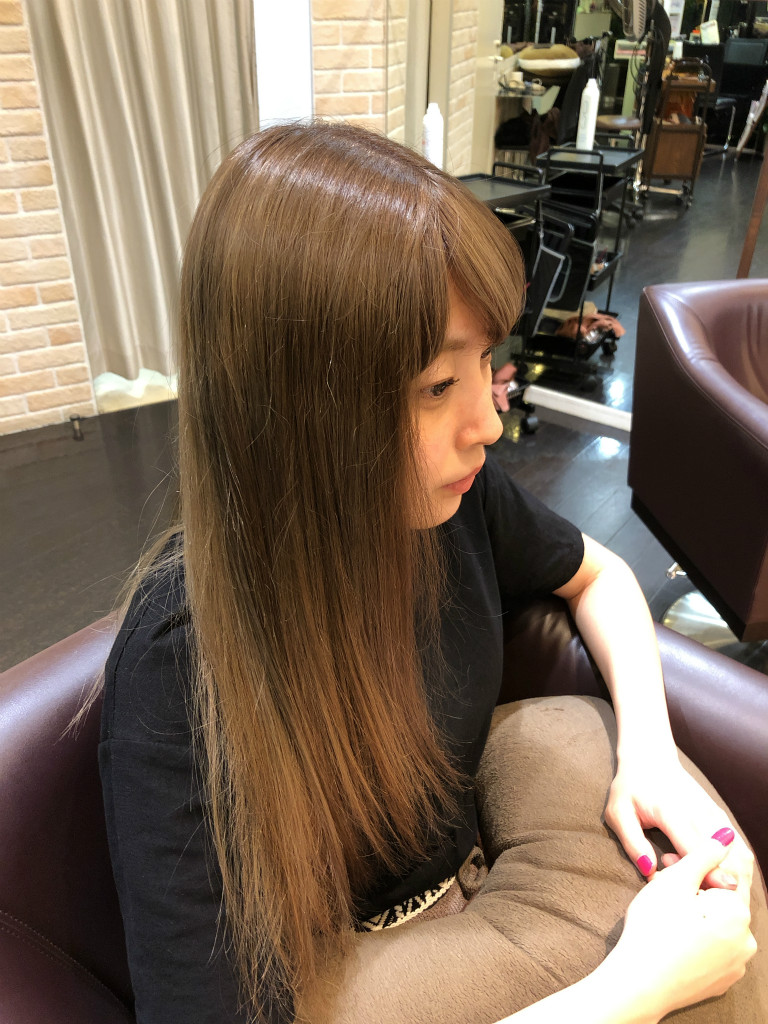 職場の規則が緩めらしく結構明るくて?OKみたいなので、ガッツリ二回ブリーチしてからの、ミルクティーベージュ(ベージュ系はさすがにすぐとれてしまうので、染め上がりはやや濃いめ)をオン!!!うーん、やっぱり高発色や、薄い色味を望むなら、ためらわずに二回ブリーチはマストですね~(;^ω^)