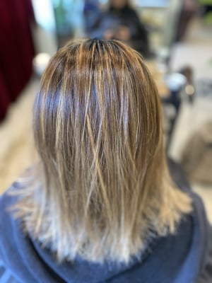 根元ブリーチ無しベージュからの毛先ブリーチオンカーキベージュ