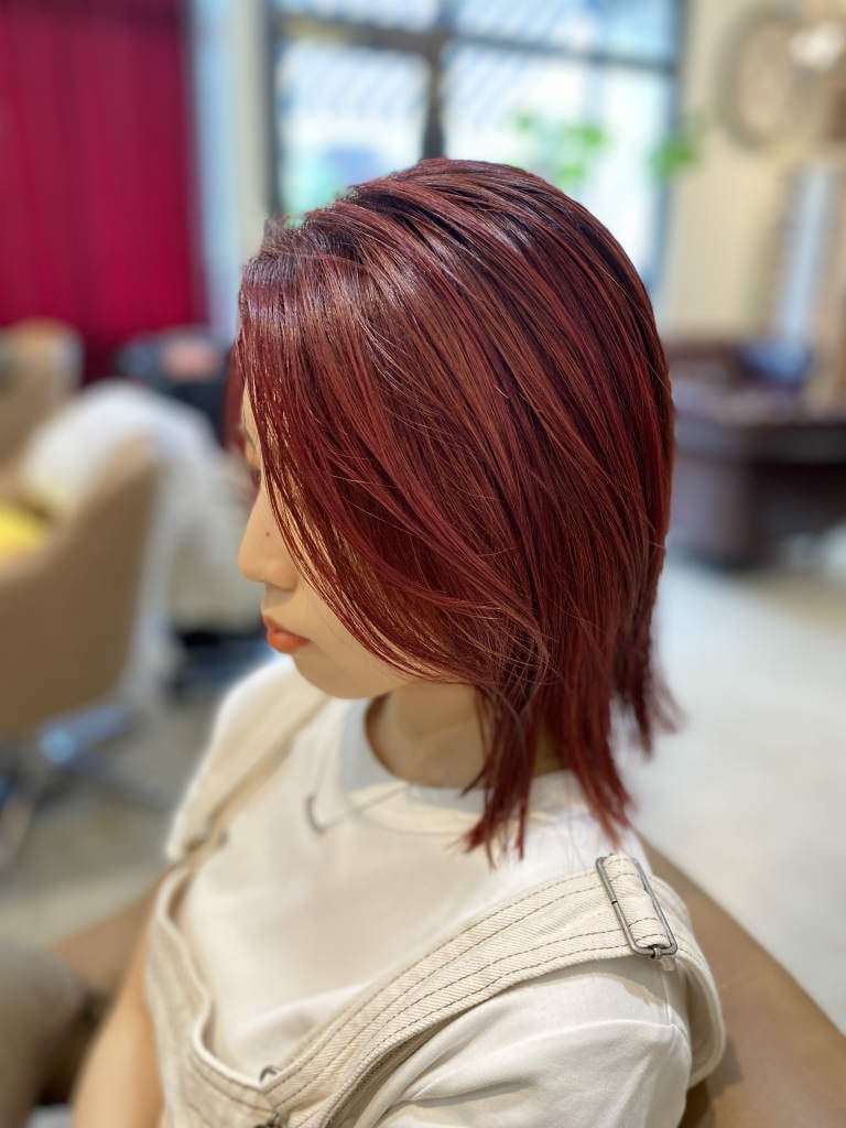 9/17専門学校に通うアルティスタ・チルドレン(笑)のM様・・・(*^^*)ダメージのことを考えるとブリーチはしたくない(><)けど髪色は楽しみたい❣とゆーことで、ベースは13トーンの普通のカラーでリフトアップした後新色のエノグのピンクレッドを企業秘密の配合でのせるとこんな感じに仕上がるんです( `ー´)ノ