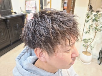 11/14 北千住よりお越しの三児のパパ・Y様(`・ω・´) バリバリの直毛の上、若干長さも足りなかったんですが、ツイストスパイラルを何とかやってくれ!といわれ渋々かけることに・・・(><) 中学生のころからのお客様なのでなんとか頑張りました!